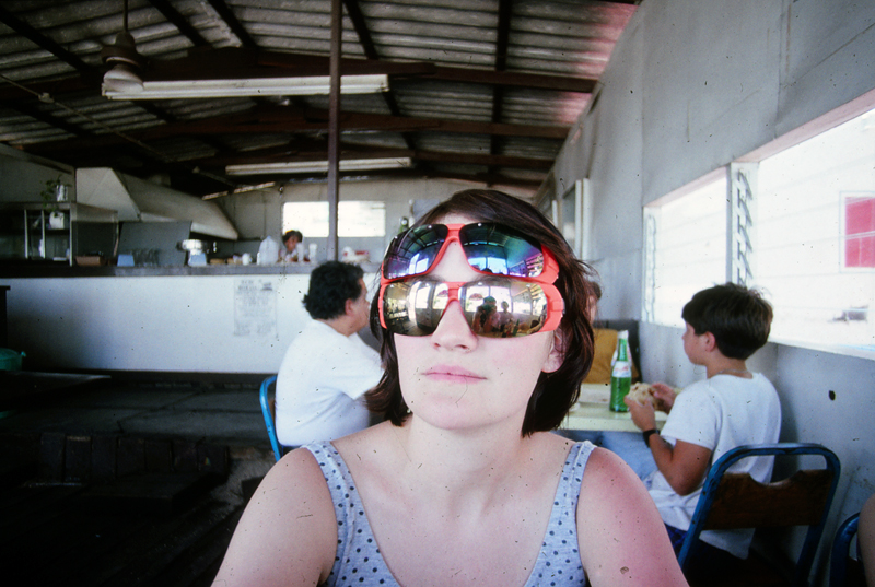 Ciudad Constitución until pretty late, and the only hotel we could find wanted $60 a night (which we thought was outrageous). We'd passed a campground outside of town that was $5 for a chunk of sand to sleep on, and it appeared that's where we'd be that night. We got there and found ourselves surrounded by a gazillion amateur astronomers (mostly Americans). Everyone was keyed up for the eclipse the next morning, but we wanted sleep. Lemur and I hadn't really prepared much beyond sleeping bags, so we slept in the car, which, being a cheap Avis rental in Mexico in '91 was not the most comfortable place to sleep.